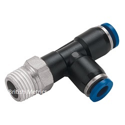 Male stud run tee push-in 4mm metric x 1/8 NPT
